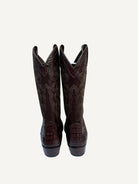 A western boot made for the ones who notice the details. Rich brown caiman leather wraps the foot from toe to ankle, bringing depth, texture, and a subtle shine. The embroidered shaft adds a crafted finish, while the snip toe keeps the line sharp. Pull on straps make them an easy slide on and go.