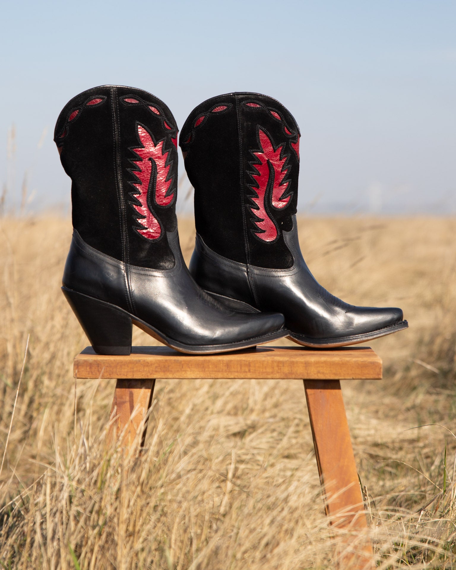 Whether you're looking for women’s black Western boots for a sleek, timeless look or bold cowboy boots for women in red, brown, silver, or metallic finishes, our collection is designed to make heads turn! Our Western Collection ranges from classic western boots for women to a bold and vintage twist on our bestselling flower boots, to intricate hand cut work, striking patterns, and patchwork designs. It’s time to get playful with your countryside getaway aesthetic and fetch all the compliments that will fly your way!