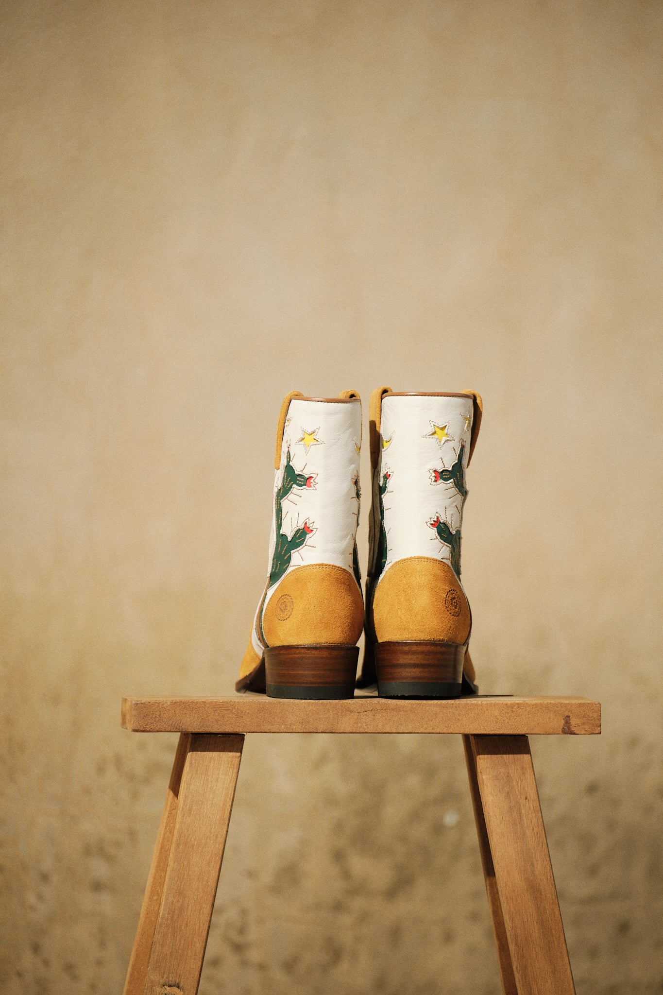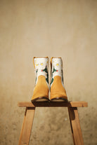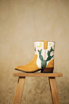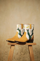 These ankle boots feature desert night motifs that seamlessly blend into both day and night outfits. Crafted with a Goodyear welt for enhanced durability. Only one pair is available.